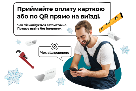 Чек формується в Є-Чек, а оплата (якщо підключено POS) — на цьому ж пристрої.
