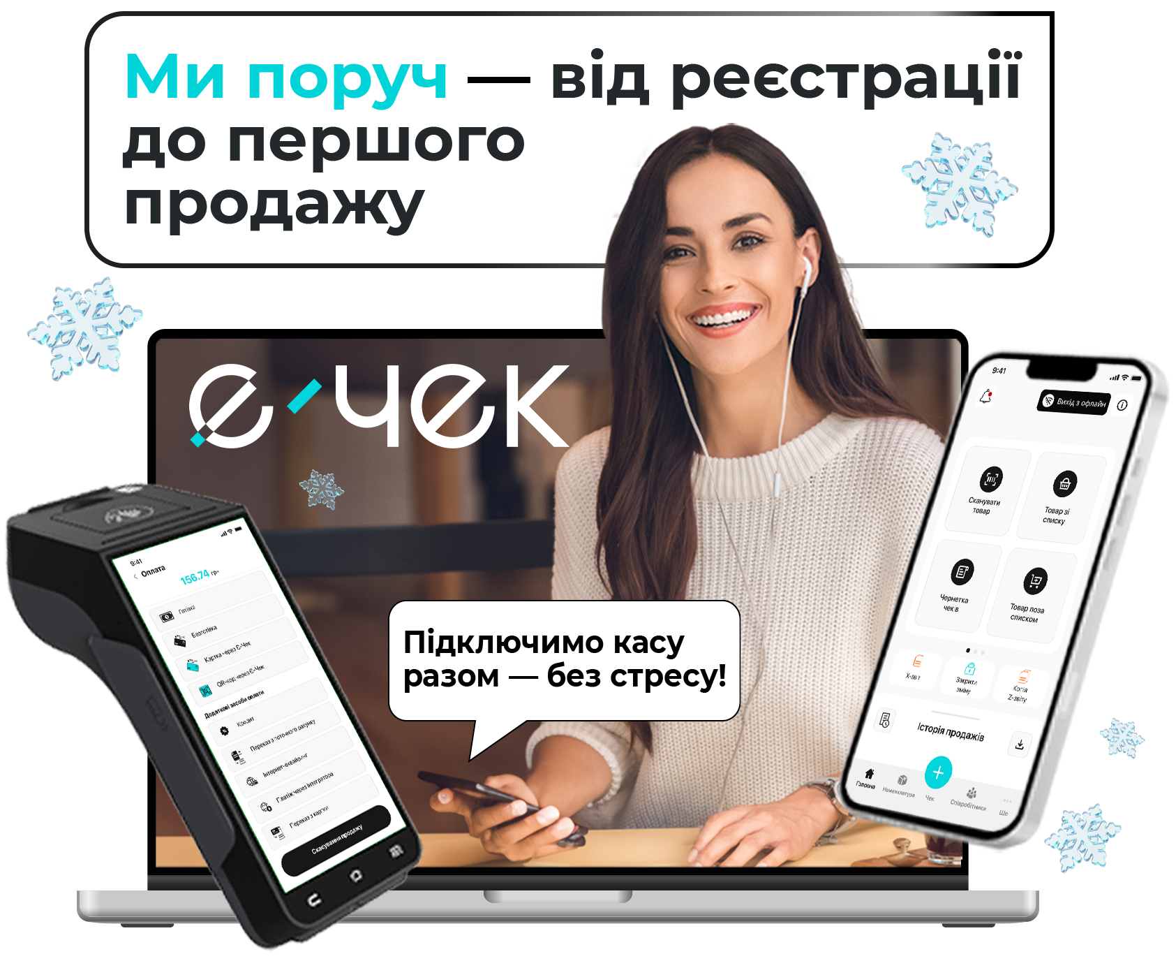 Ми поруч на кожному етапі: реєструємо ПРРО/точку/касира, налаштовуємо касу на смартфоні або POS-терміналі та допомагаємо піключити оплату. За потреби — створюємо каталог товарів/послуг і вносимо залишки.