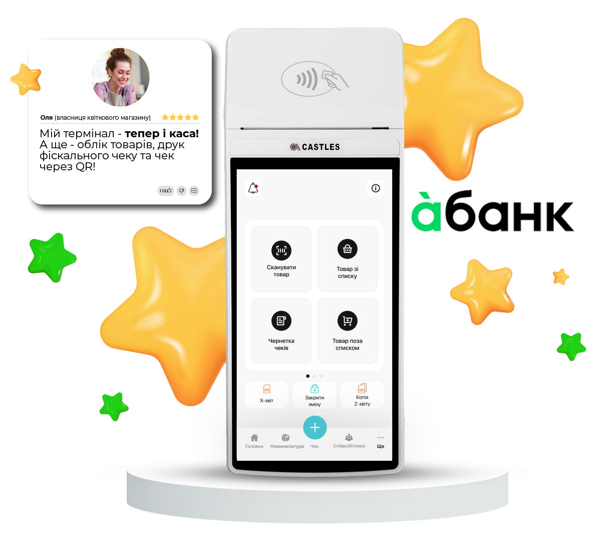 Як альтернативу, ви можете використовувати інтегровані платіжні технології та рішення в є-чек на смартфоні: Visa tap to phone, платіжний QR від Ощадбанк, Монобанк, Приватбанк з еквайрингом від цих банків. Еквайринг в смартфоні коштує - 1,3 % від суми транзакції (що навіть дешевше вартості еквайрингу на POS термінал) і не потребує орендної плати (оренда POS терміналу коштує 400-600 грню в місяць).